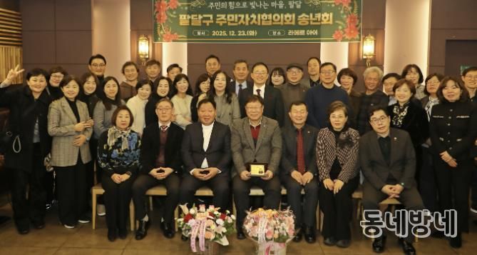동네방네 김형규 기자 | 수원시 팔달구 주민자치협의회는 지난 12월 23일 관내 식당에서 각 동 주민자치회장, 사무국장 등 40여 명이 참석한 가운데 2025년 송년회를 개최했다.