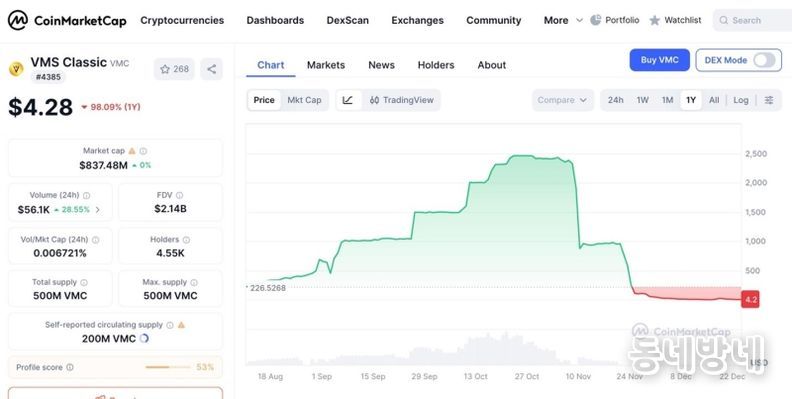 출금정지처분의 결정적 요인은 자체 발행한 VMC 코인이 불법매도된 사건이다. 2025년7월에 최초 미국 거래소인 Bitmart 에 상장한 VMC 는 상장가 $10을 시작으로 높은 상장 시작가임에도 불구하고 2개월만에 $600 대를 돌파했다. 사건이 터지기 11월4일 전까지는 $2,400 까지 넘어서는 놀라운 기록을 보였지만 결국 불법매도가 시작된 LBank 가 빅토리아 거래소를 금융당국에 신고하면서 현재는 상장가 미만으로 가격이 폭락하게 되는 희대의 사건으로 전락하고 말았다.