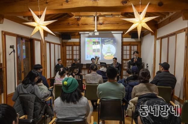 한옥숙박체험관 마당과 한옥11동에서는 캐럴 등 공연이 열려 겨울의 추위를 따뜻하게 채웠다. 20일에는 지역에서 활동하는 ‘모담어린이국악합창단’, 지역 내 아마추어 합주단 ‘포디움 윈드오케스트라’, 전문공연단체‘The울림’의 앙상블 무대가 열렸고, 21일에는 보듬우리협동조합의 클라리넷 독주가 열려 발달장애인과 비장애인이 음악으로 하나 되며 연말의 감동을 전했다.