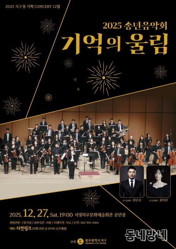 동네방네 김형규 기자 | 광주광역시 서구는 2025년 한 해를 마무리하며 오는 27일 오후7시 서빛마루문화예술회관에서 송년음악회 ‘기억의 울림’을 개최한다.