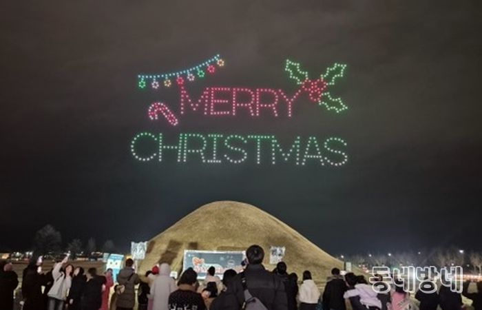 동네방네 김형규 기자 | 경주시는 지난 24일 황남동 고분군 일원에서 ‘브레드이발소와 함께하는 크리스마스 드론 아트쇼’를 개최해 시민과 관광객에게 특별한 연말 추억을 선사했다.