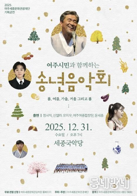동네방네 김형규 기자 | 여주세종문화관광재단이 오는 12월 31일, 세종국악당에서 ‘2025 여주시민과 함께하는 송년음악회’를 개최다.