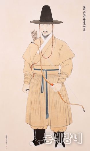 특히, 무과 중시(中試)에 급제하고 뛰어난 활솜씨를 가졌다는 의병장의 기록에 기반해 손에 활을 움켜쥔 채 화살통을 메고 있는 가로 90cm, 세로 160cm 입상 영정을 내놓았다.