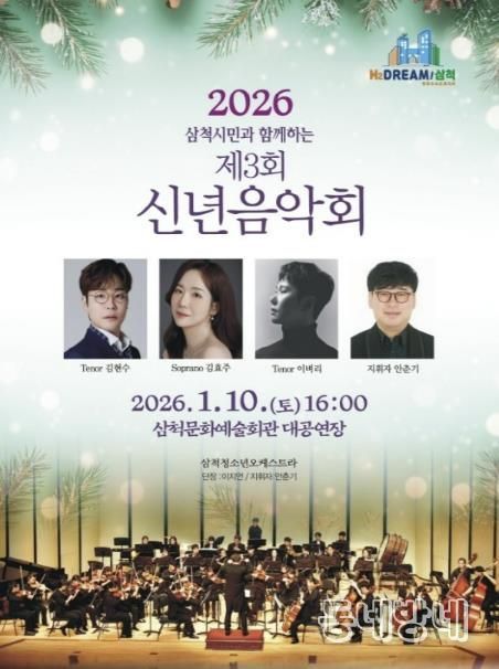 동네방네 김형규 기자 | 삼척시는 새해를 맞아 시민과 함께 문화로 희망을 나누는 '2026 삼척시민과 함께하는 제3회 신년음악회'를 오는 1월 10일 오후 4시, 삼척문화예술회관 대공연장에서 개최한다.