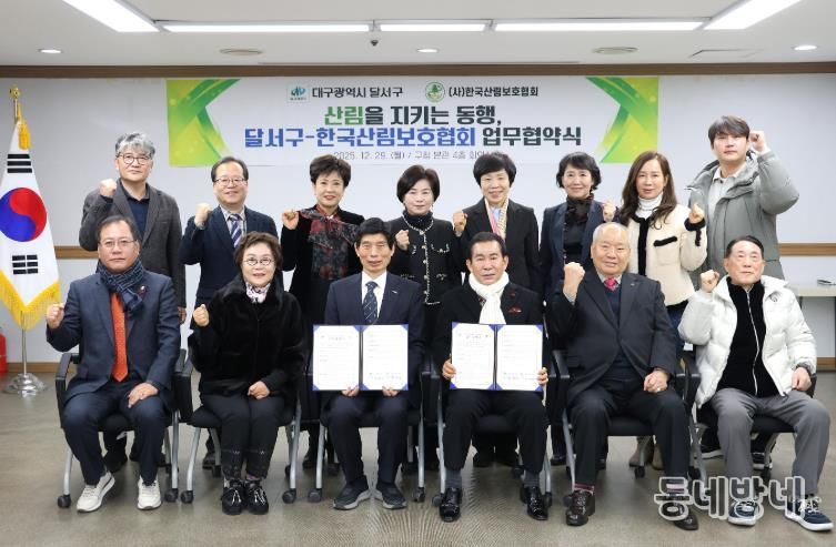이태훈 달서구청장은 “주민과 함께 가꾼 숲은 오늘의 달서를 지탱하는 힘이자 미래 세대에게 물려줄 소중한 자산”이라며, “이번 협약을 계기로 산림보호협회와 더욱 긴밀히 협력해 기후위기에 선제적으로 대응하고, 살고 싶은 도시, 내일이 더 기대되는 달서를 만들어 가겠다”고 말했다.