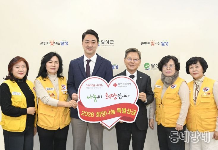 동네방네 김형규 기자 | 대구 달성군은 지난 15일, 적십자 모금운동에 대한 군민 참여 분위기를 확산하기 위해 대한적십자사 대구지사에 ‘2026년도 적십자 희망나눔 특별성금’ 100만 원을 전달했다.