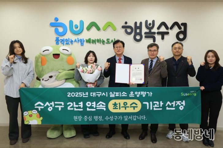 동네방네 김형규 기자 | 대구 수성구는 ‘대구시 살피소 운영 실적 평가’에서 2년 연속 최우수 기관으로 선정됐다고 밝혔다.