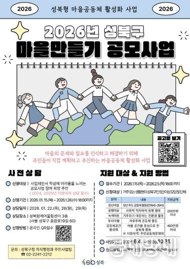 동네방네 김형규 기자 | 서울시 성북구는 마을공동체 활성화를 위해 '2026년 성북구 마을만들기 공모사업'을 진행한다.