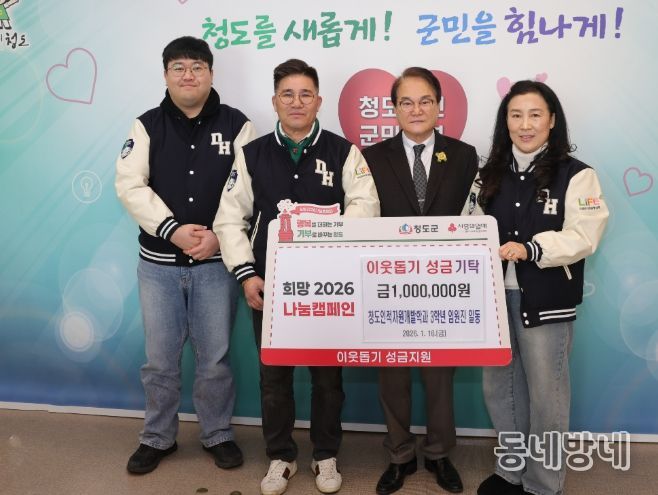 동네방네 김형규 기자 | 대구한의대학교 청도인적자원개발학과 3학년 임원진들(과대표 조형석)은 지난 16일 희망2026 나눔캠페인 이웃돕기 성금 100만원을 청도군에 전달했다.