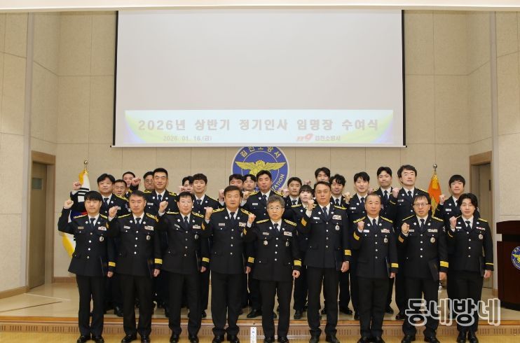 동네방네 김형규 기자 | 김천소방서(서장 송영환)는 1월 16일 오전 본서 2층 대회의실에서 2026년 1월 정기인사에 따른 임용식을 개최했다.