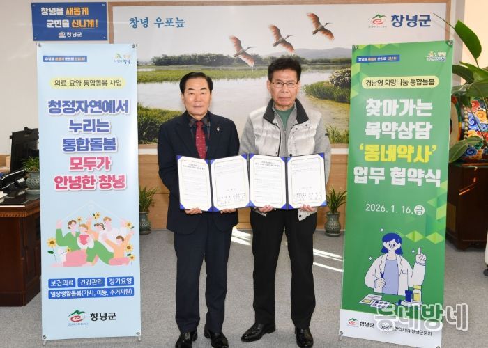 동네방네 김형규 기자 | 창녕군은 16일 지역사회 통합돌봄 강화를 위해 대한약사회 창녕군분회와 찾아가는 복약상담 ‘동네약사’ 사업 추진을 위한 업무협약을 체결했다.