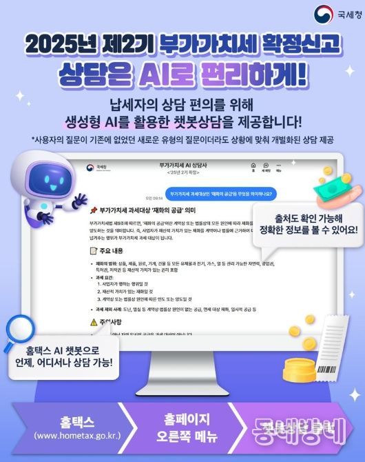 동네방네 김형규 기자 | ■ 2025년 제2기 부가가치세 확정신고 상담은 AI로 편리하게!