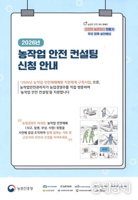 동네방네 김형규 기자 | 안동시는 농업 분야 중대재해 예방과 안전한 농작업 환경 조성을 위해 '2026년 농작업 안전재해예방 지원체계 구축사업'의 일환으로 ‘농작업 안전보건관리 컨설팅’ 참여농가를 모집한다고 1월 16일(금) 밝혔다.