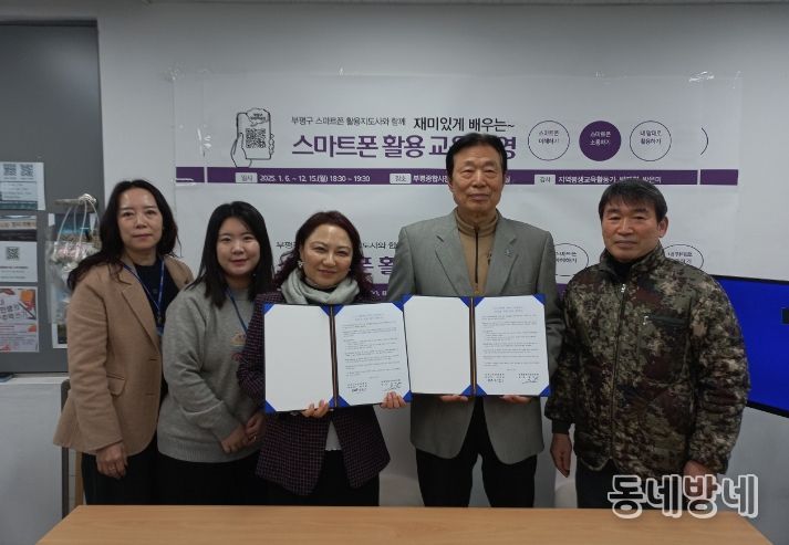동네방네 김형규 기자 | 부평구 산곡노인문화센터는 지난 16일 부평종합시장 고객지원센터에서 부평종합시장상인회와 ‘1:1 맞춤형 온라인 길라잡이’ 사업추진을 위한 업무협약식을 체결했다.