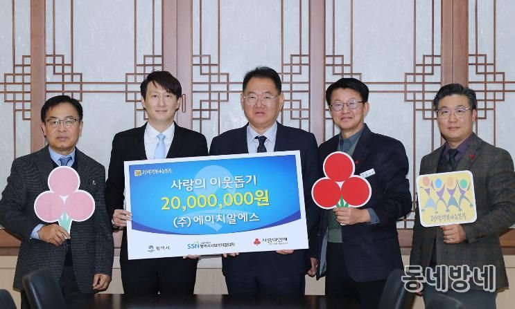 동네방네 김형규 기자 | ㈜에이치알에스는 지난 15일 평택시청 대외협력실에서 평택행복나눔본부에 이웃돕기 성금 2천만 원을 전달했다.