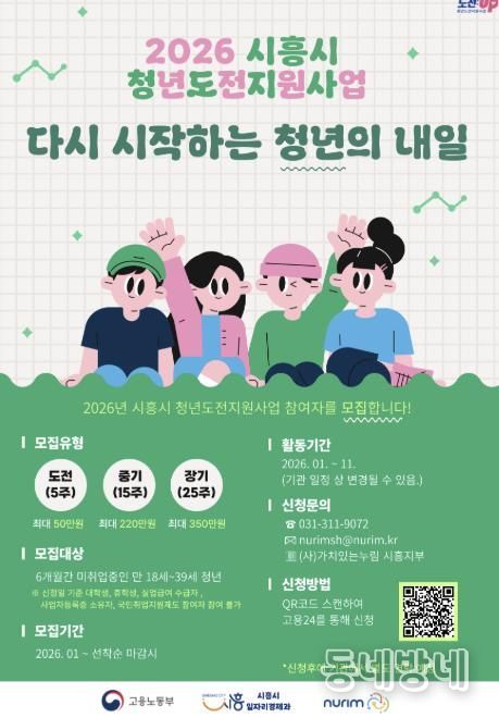 동네방네 김형규 기자 | 시흥시는 취업과 사회 진출에 어려움을 겪고 있는 청년들의 재도전을 지원하기 위해 ‘2026년 청년도전지원사업’ 참여자 156명을 모집한다.