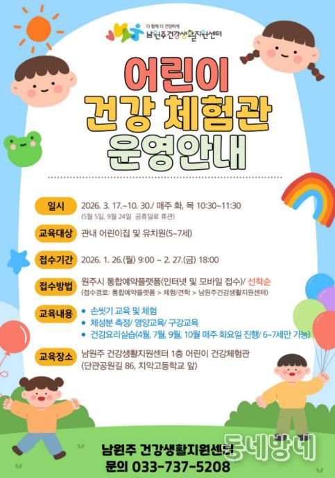 동네방네 김형규 기자 | 남원주건강생활지원센터는 손 씻기, 영양 등을 주제로 미취학 아동들에게 건강 교육을 제공하는 ‘어린이 건강체험관’을 운영하고 있다.
