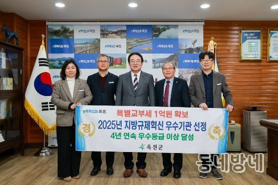 동네방네 김형규 기자 | 옥천군은 행정안전부가 주관하는‘2025년 지방규제혁신 추진성과 평가’에서 4년 연속 우수기관으로 선정돼 특별교부세 1억 원을 확보하는 성과를 거두었다고 밝혔다.