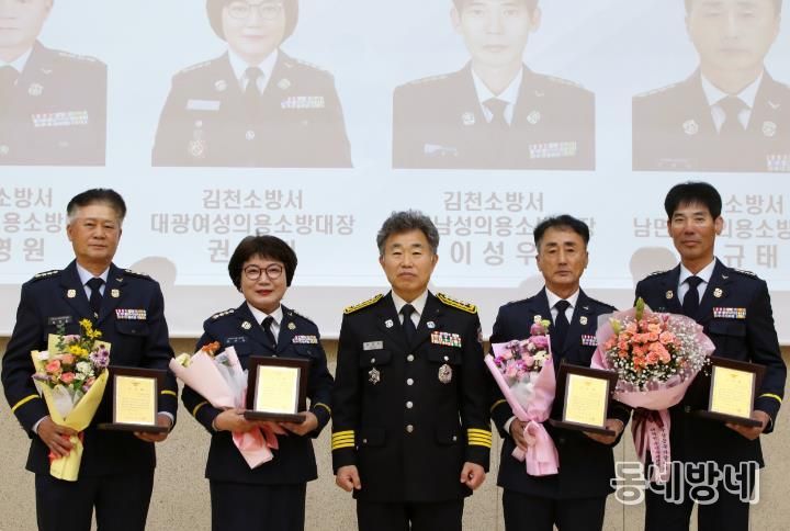 그리고 그동안 투철한 사명감과 봉사정신으로 지역 안전문화 정착에 공헌한 이미숙 전 여성연합회장, 이영원 전 어모남성의용소방대장, 권주희 전 대광여성의용소방대장, 이성우 전 대덕남성의용소방대장, 박규태 전 남면남성의용소방대장 5명에게 공로패를 수여했다.