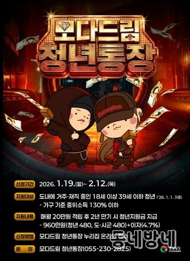 동네방네 김형규 기자 | 양산시는 2026년 1월 19일부터 2월 12일까지 모다드림 청년통장 지원사업 상반기 참여자를 모집한다고 밝혔다.