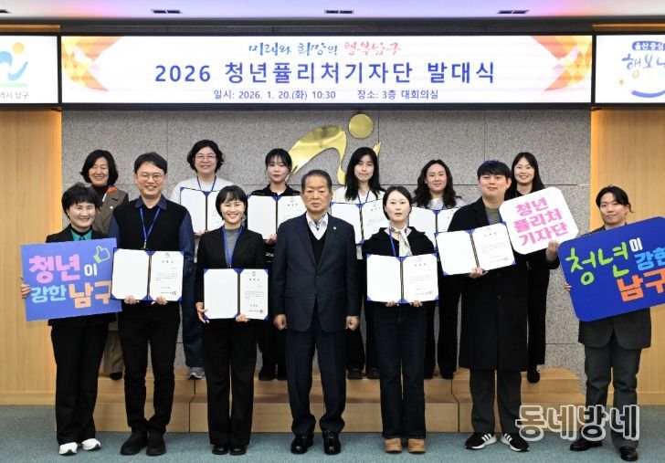 서동욱 남구청장은 “2026년 청년퓰리처기자단이 청년의 눈높이에서 지역의 변화를 기록하고 전하며 남구에 새로운 활력을 불어넣어 주길 기대한다”며 “남구는 앞으로도 청년이 도전하고 성장할 수 있는 환경을 만들기 위해 아낌없는 지원을 이어가겠다”고 밝혔다.