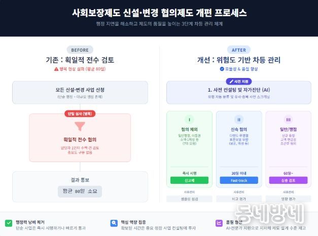 동네방네 김형규 기자 | 보건복지부는 급증하는 협의 건수로 인한 행정 지연을 해소하고, 더 나아가 지방자치단체가 지역 특성에 맞는 우수한 사회보장제도를 설계할 수 있도록 실질적으로 지원하기 위한 '사회보장제도 신설·변경 협의제도 개편방안'을 확정, 2026년부터 시행한다고 밝혔다.