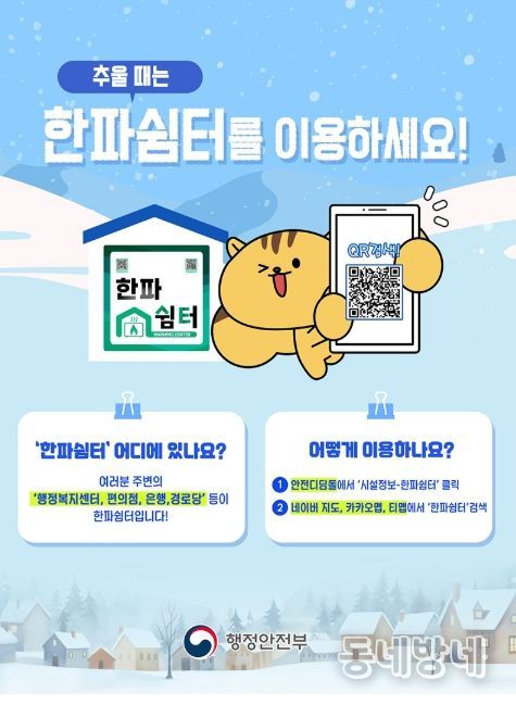 여러분 주변의 '행정복지센터, 편의점, 은행, 경로당' 등이 한파쉼터입니다!