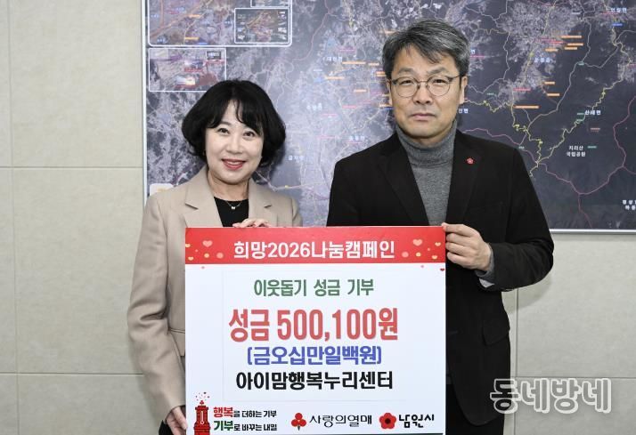 동네방네 김형규 기자 | 남원시는 지난 20일, 아이맘행복누리센터가 ‘희망 2026 나눔 캠페인’에 성금 50여만 원을 기부했다고 밝혔다.