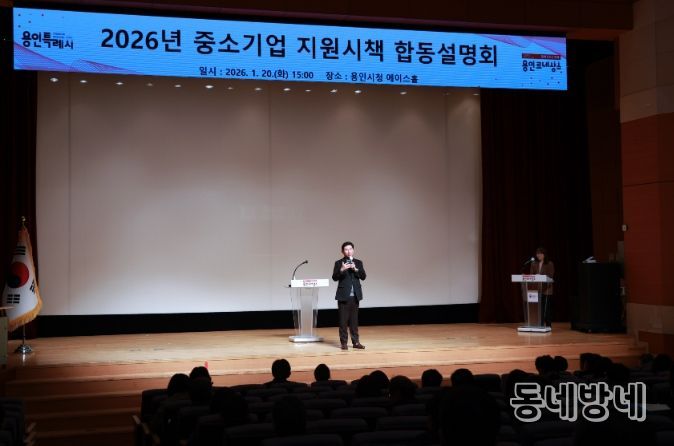 동네방네 김형규 기자 | 용인특례시는 20일 시청 에이스홀에서 지역 내 중소기업 지원 정책을 설명하는 ‘2026년 중소기업 지원시책 합동설명회’를 열었다.