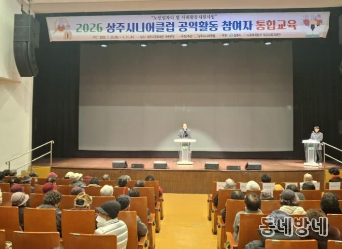 동네방네 김형규 기자 | 상주시니어클럽은 2026년 노인일자리 및 사회활동지원사업 참여자를 대상으로 1월 20일부터 21일까지 이틀간 상주문화회관에서 통합교육을 실시했다.