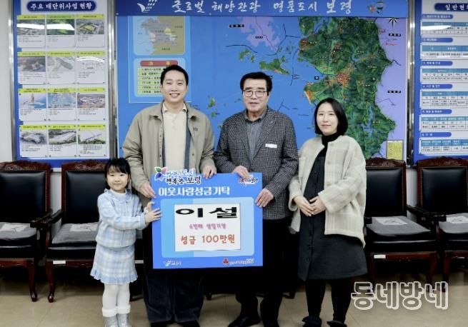 동네방네 김형규 기자 | 보령시는 지난 20일 시장실에서 이지원 씨와 배우자 고가슬 씨, 그리고 딸 이설 양이 참석한 가운데 ‘희망 나눔 캠페인’ 성금 전달식을 가졌다. 이날 이 씨 가족은 이설 양의 생일을 기념해 정성껏 마련한 성금 100만 원을 보령시에 기탁했다.