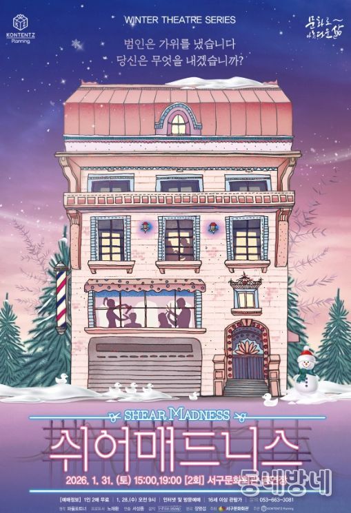 동네방네 김형규 기자 | 서구문화회관은‘Winter Theatre Seires(겨울 연극 시리즈)’의 첫 번째 순서로 연극'쉬어매드니스'를 1월 31일 오후 3시, 7시 (2회) 무대에 올린다.