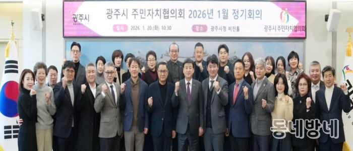동네방네 김형규 기자 | 광주시는 지난 20일 시청 비전홀에서 읍면동 주민자치위원장, 회장, 사무국장 등이 참석한 가운데 ‘광주시 주민자치협의회 2026년 1월 정기회의’를 열고 제10대 광주시 주민자치협의회를 이끌 협의회장과 임원을 선출했다.