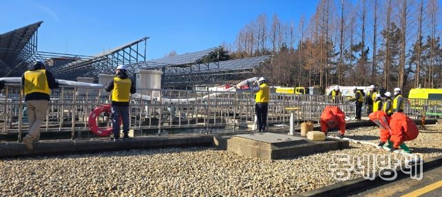 훈련은 정수사업소 내 응집지 인근에서 출처 불명의 액체용기가 발견되고 미상의 액체가 외부로 누출된 상황을 가정해 진행됐다. 해당 물질이 유해화학물질일 가능성이 있다고 보고 실제 화학테러 상황에 준하는 초동 대응 절차를 점검했다.