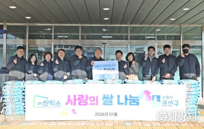 동네방네 김형규 기자 | 수원시 권선구는 21일 ㈜인익스에서 설 명절을 맞이하여 후원한 백미(10kg) 100포에 대한 전달식을 진행했다.