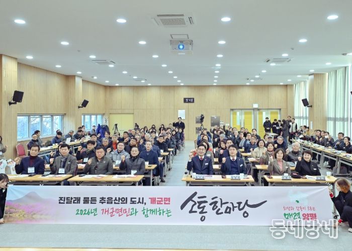 이어 2026년 개군면의 도약을 위한 향후 추진 계획으로 △개군 목욕탕(거점활성화센터) 운영 △향리천 교량과 앙덕–하자포 간 자전거길 연계 △추읍산 진달래 군락지 조성 등을 제시했다. 자전거 특구 조성, 관광자원화, 주민 밀착형 복지시설 확충을 핵심으로 한 정책 방향을 주민 눈높이에 맞춰 설명해 큰 관심을 받았다.