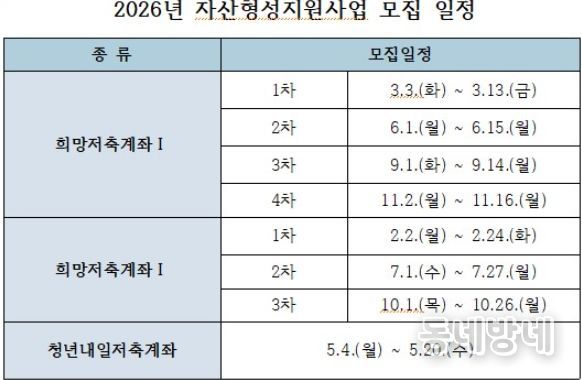 조훈석 복지과장은 “자산형성지원사업은 단순한 현금 지원을 넘어, 스스로 미래를 준비하고 자립할 수 있도록 돕는 정책”이라며, “앞으로도 취약계층과 저소득 청년의 자립을 위한 맞춤형 지원을 지속적으로 확대해 나가겠다”고 말했다.