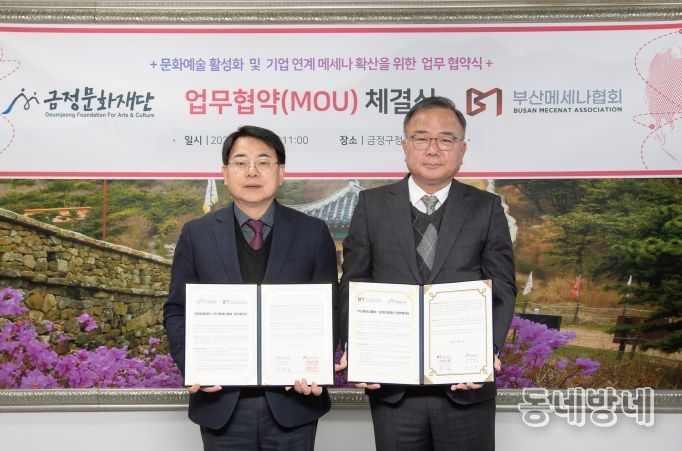 동네방네 김형규 기자 | 금정문화재단(이사장 윤일현)은 지난 21일 금정구청에서 (사)부산메세나협회(회장 백정호)와 지역 문화예술 활성화 및 메세나 사업 확산을 위한 업무협약(MOU)을 체결했다고 밝혔다.