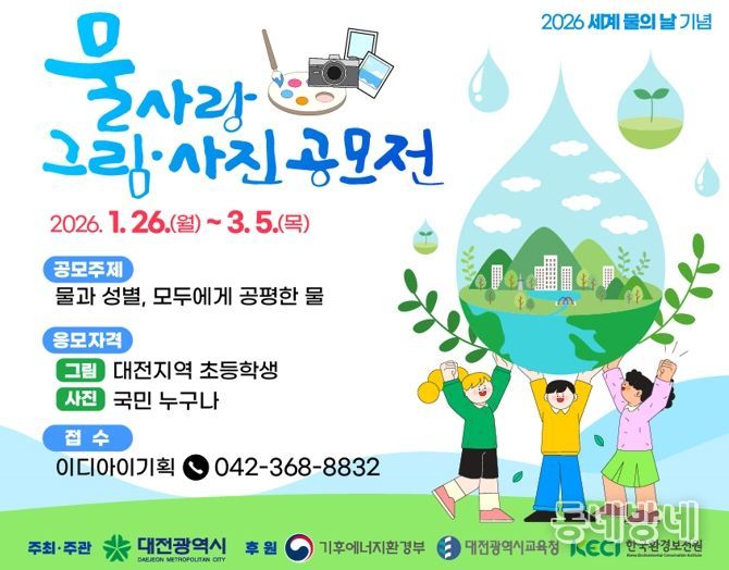 한편, 이번 공모전은 기후에너지환경부와 대전시교육청, 환경보전원 등이 후원하며, 기타 자세한 사항은 대전시 누리집 시정소식 게시판을 참고하면 된다.