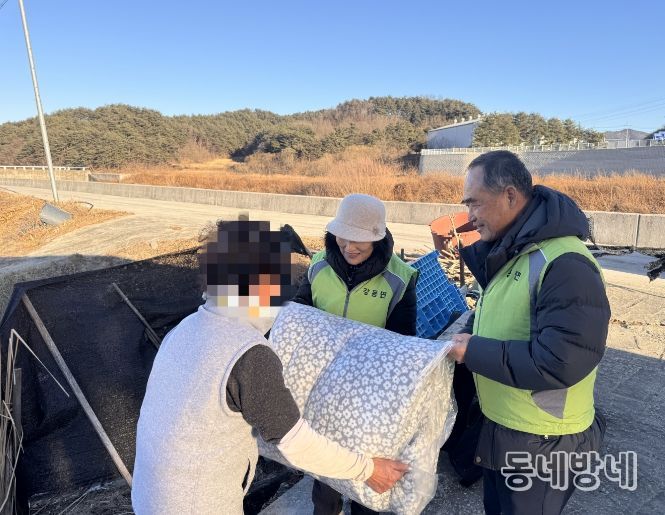 동네방네 김형규 기자 | 강릉시 강동면지역사회보장협의체(민간위원장 안영란)는 최근 관내 취약계층의 따뜻한 겨울나기를 지원하기 위해, 서강레미콘에서 후원한 이불 30채를 전달하는 나눔 봉사를 실시했다.