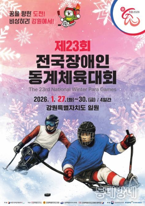 동네방네 김형규 기자 | 문화체육관광부가 후원하고 대한장애인체육회가 주최하며, 강원특별자치도가 주관하는 ‘제23회 전국장애인동계체육대회’가 1월 27일부터 30일까지 강원특별자치도 일원에서 열린다.