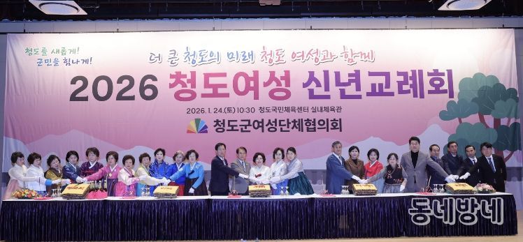 동네방네 김형규 기자 | 청도군여성단체협의회(회장 변소영)는 병오년 새해를 맞아 지난 24일 청도국민체육센터 실내체육관에서 ‘2026년 청도여성단체협의회 신년교례회’를 개최했다.
