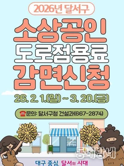 동네방네 김형규 기자 | 대구 달서구는 경기침체로 어려움을 겪고 있는 소상공인의 경제적 부담을 완화하기 위해, 2026년도 도로점용료를 25% 감면한다고 28일 밝혔다.