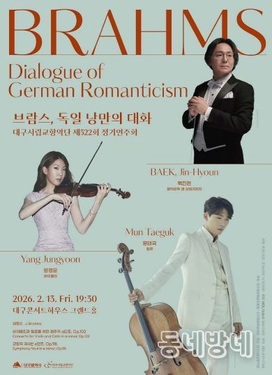 동네방네 김형규 기자 | 두 악기가 주고받는 정교한 선율에서 오케스트라가 만드는 밀도 높은 호흡까지, 대구시립교향악단은 오는 2월 13일 오후 7시 30분, 대구콘서트하우스 그랜드홀에서 '제522회 정기연주회 : 브람스, 독일 낭만의 대화'를 선보인다.
