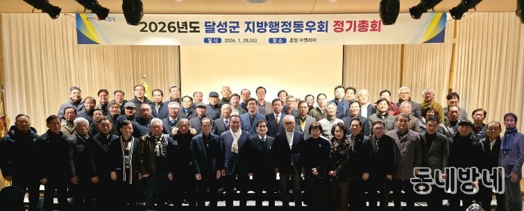 동네방네 김형규 기자 | 달성군지방행정동우회(회장 임충규)는 28일 호텔 아젤리아에서 ‘2026년도 정기총회’를 열고 한 해 활동을 마무리하며 새해 사업계획을 확정했다.