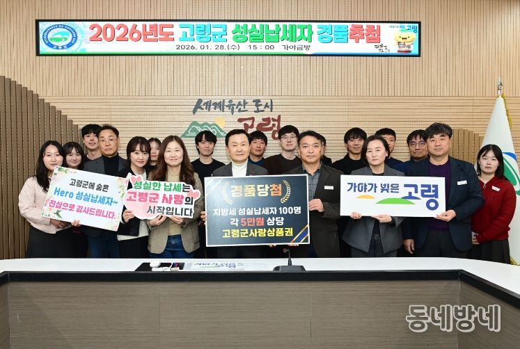 동네방네 김형규 기자 | 고령군은 지난 1월 28일, 군청 가야금방에서 지방재정 확충에 기여한 성실납세자들을 격려하기 위해 ‘지방세 성실납세자 경품 추첨’을 실시했다고 밝혔다.