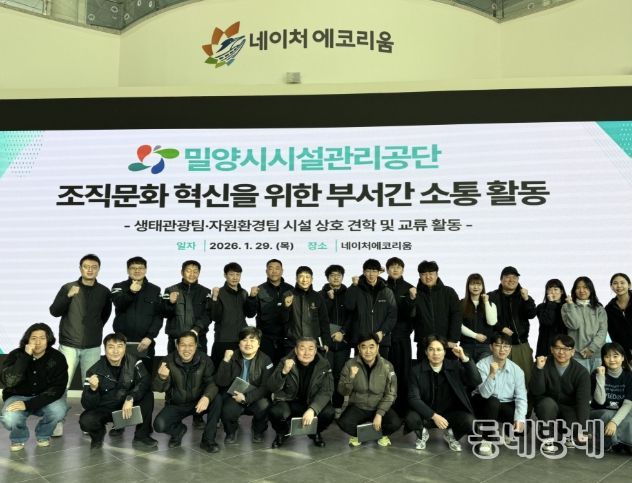 동네방네 김형규 기자 | 밀양시시설관리공단(이사장 김경민)은 29일 네이처에코리움과 밀양시 생활폐기물 소각시설에서 부서 간 소통 활동을 추진하며 조직 내 협업 강화와 소통 문화 정착에 나섰다.