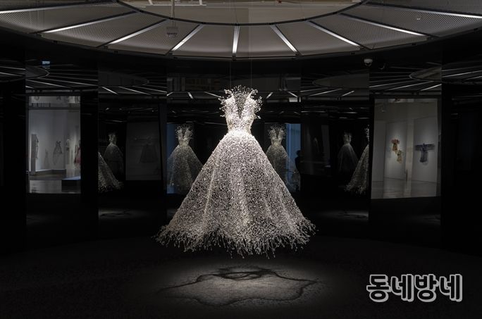 특히 3층 전시장 도입부 'Dreaming' 공간이 이번 전시를 대표하는 화제의 공간이자 주요 포토스폿으로 큰 인기를 끌고 있다. 어둠 속 중심에 전시된 ‘백매(白梅)’ 드레스는 검은 거울과 조명 연출을 통해 몽환적인 장관을 만들어내며 관람객의 발길을 붙잡고 탄성을 자아낸다.