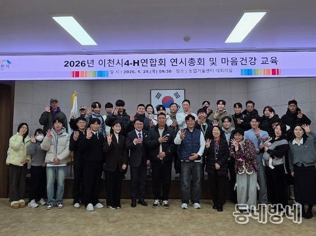 동네방네 김형규 기자 | 이천시4-H연합회는 29일 농업기술센터 대회의실에서 회원 50여 명이 참석한 가운데 2026년 연시총회를 개최했다.