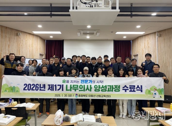 동네방네 김형규 기자 | 충청북도산림환경연구소는 지난 1월 5일부터 30일까지 미동산산림교육센터에서 운영한 ‘2026년 제1기 나무의사 양성과정’을 마치고, 교육과정을 이수한 교육생 32명을 배출했다.